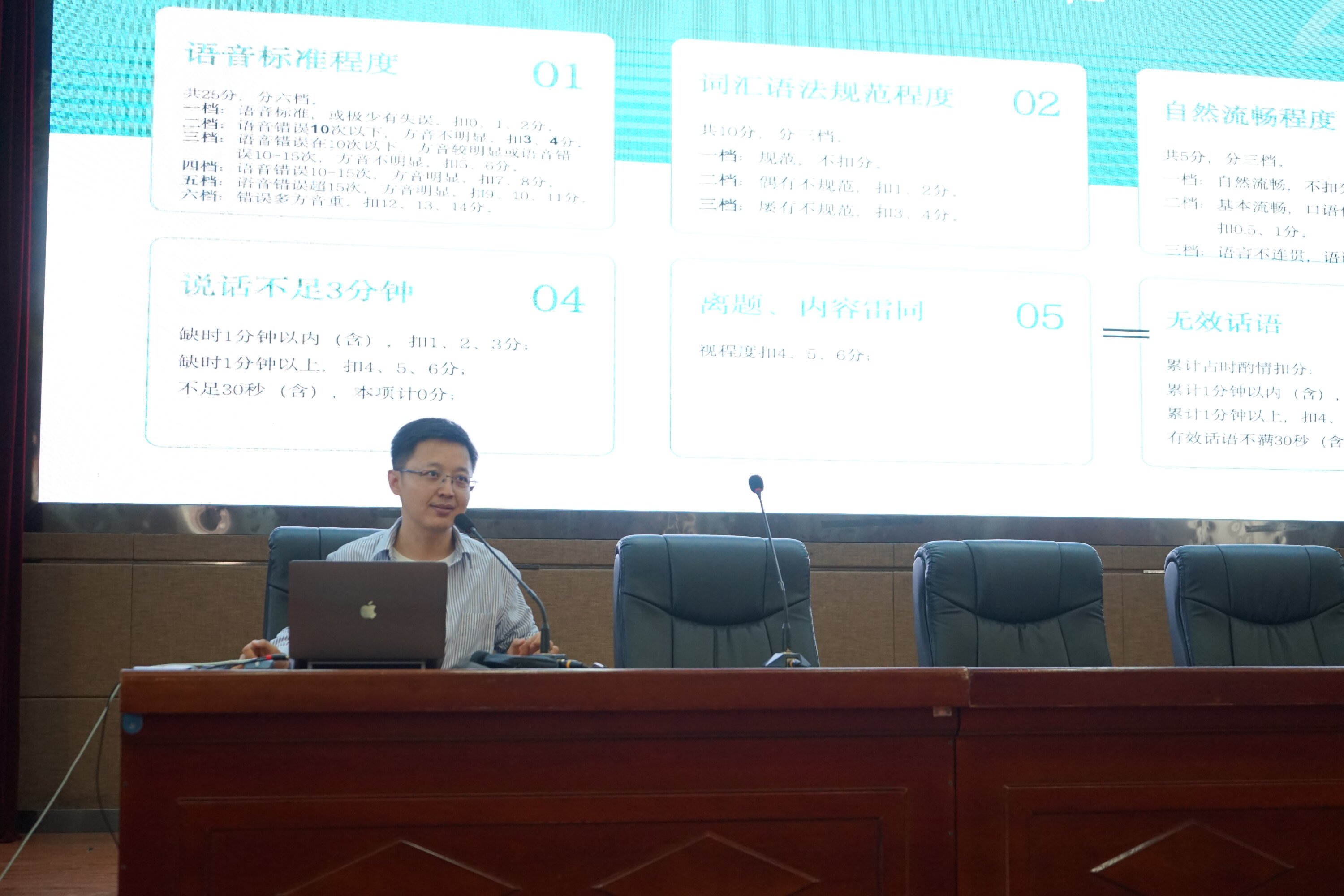 “普通話水平測試是為了測查我們在口語當(dāng)中使用國家通用語言的規(guī)范度和熟練度,同時作為標(biāo)準(zhǔn)參照性考試,參照體系分為三級六等……”