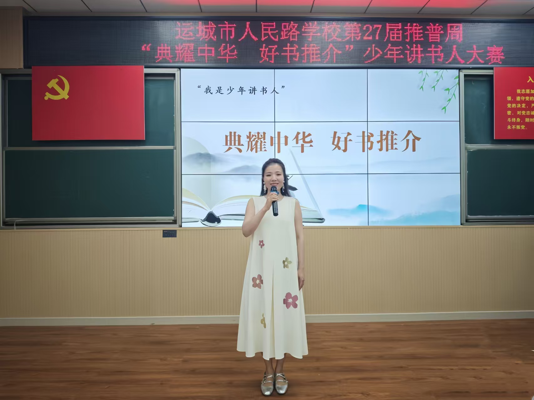 臨猗縣臨晉初中的同學(xué)們通過(guò)故事講述、詩(shī)歌朗誦、情景劇表演等多種形式,展示普通話(huà)的魅力和推普工作的豐碩成果。尤其在經(jīng)典誦讀活動(dòng)中,孩子們身著整齊的服裝,精神飽滿(mǎn)地站在舞臺(tái)上,用標(biāo)準(zhǔn)的普通話(huà)朗誦經(jīng)典詩(shī)詞和優(yōu)美文章。他們的聲音時(shí)而激昂,時(shí)而婉轉(zhuǎn),聲情并茂地演繹著文學(xué)作品的魅力,展現(xiàn)出良好的語(yǔ)言素養(yǎng)。臨猗二中嵋陽(yáng)校區(qū)在《倡議書(shū)》中提倡同學(xué)們要做漢字文化的傳承者、做普通話(huà)的推廣者、做語(yǔ)言規(guī)范的維護(hù)者、做語(yǔ)言文化的傳播者、做文化自信的踐行者,引導(dǎo)廣大師生樹(shù)立高度的文化自覺(jué)和文化自信意識(shí)。