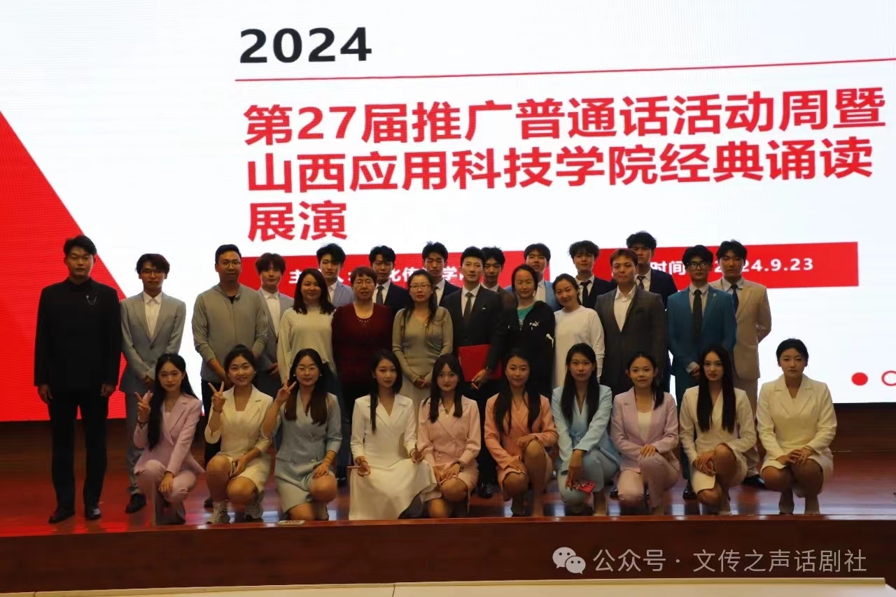 2024年9月23日,山西應(yīng)用科技學(xué)院教務(wù)處牽頭舉辦的第二十七屆推廣普通話活動暨山西應(yīng)用科技學(xué)院經(jīng)典誦讀展演在學(xué)校學(xué)術(shù)交流中心圓滿落幕。本次活動旨在弘揚中華優(yōu)秀傳統(tǒng)文化,提高師生普通話水平,激發(fā)同學(xué)們對國學(xué)的熱愛。來自全校各院系的同學(xué)們積極參與,為大家呈現(xiàn)了一場場精彩紛呈的經(jīng)典誦讀表演。