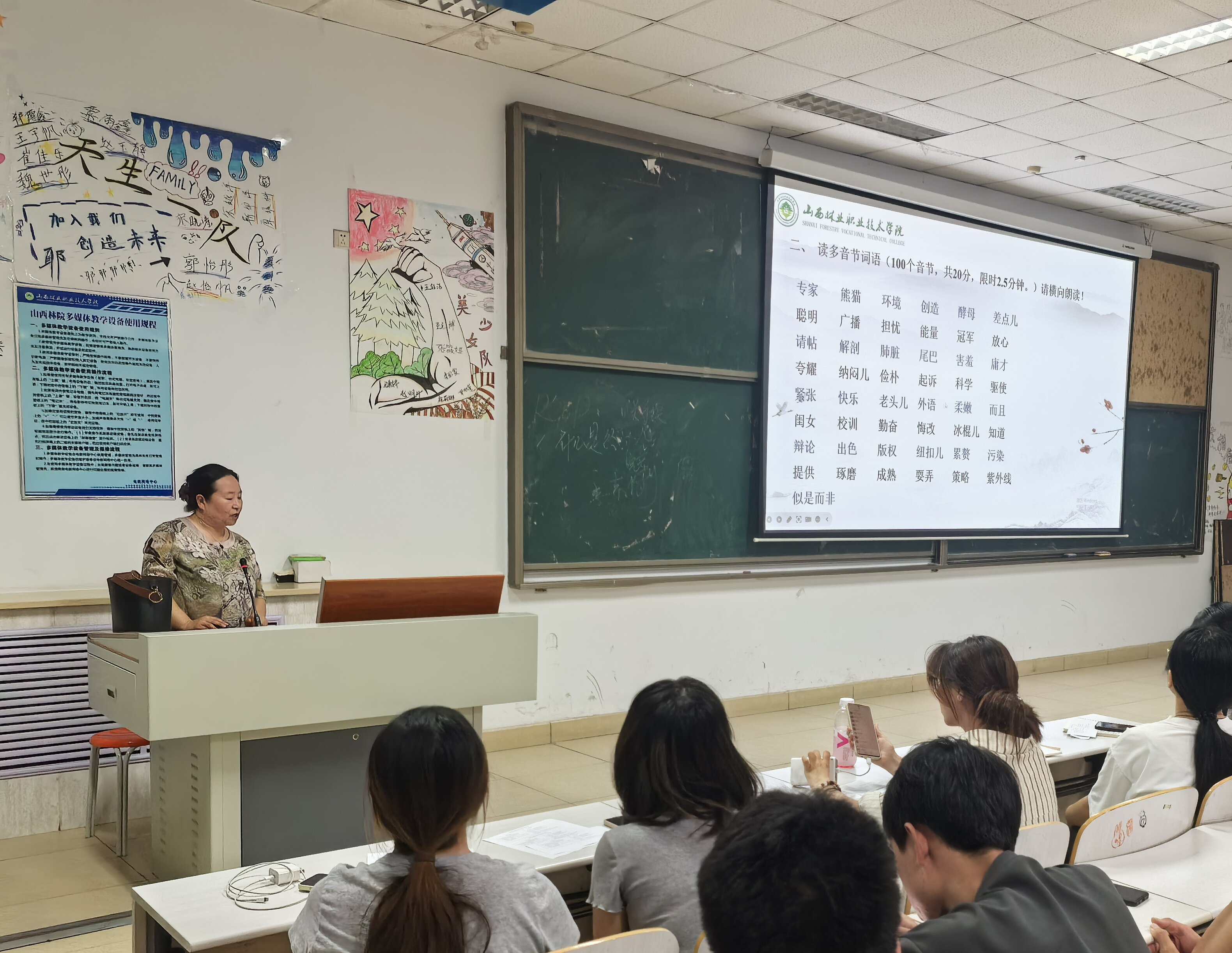 積極開展普通話培訓(xùn),為學(xué)生宣講普通話的相關(guān)政策與知識,詳細講解普通話水平測試流程,引導(dǎo)學(xué)生積極參與線上普通話模擬測試。